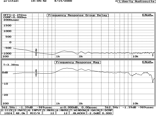 これもまたびっくりするような特性です。仕様では100Hz〜15KHzですが、国産だったら軸上で55〜22KHzと表示されるくらいのものです。(-10dBの範囲)